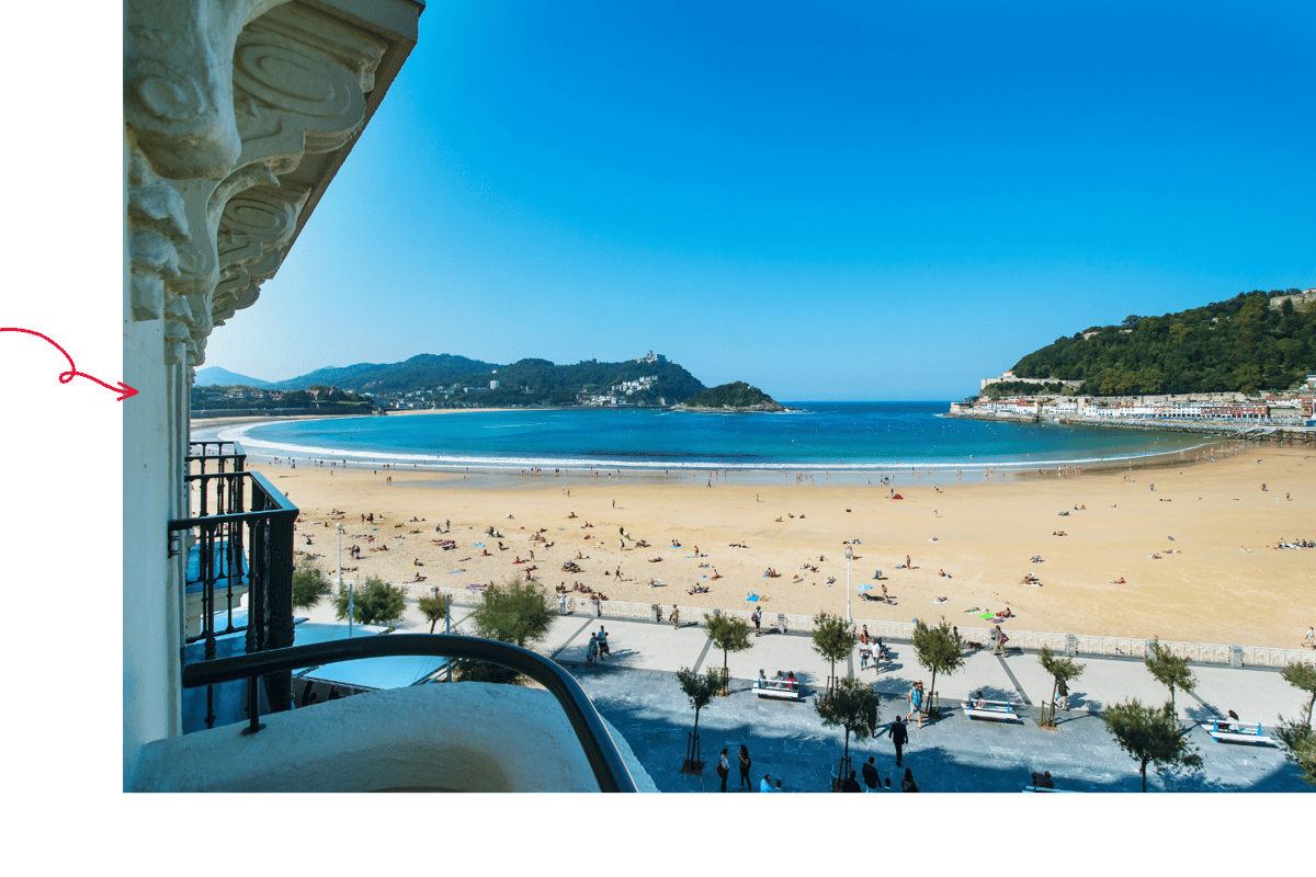 Ubicado en pleno centro de San Sebastián, frente a la emblemática Bahía de La Concha.